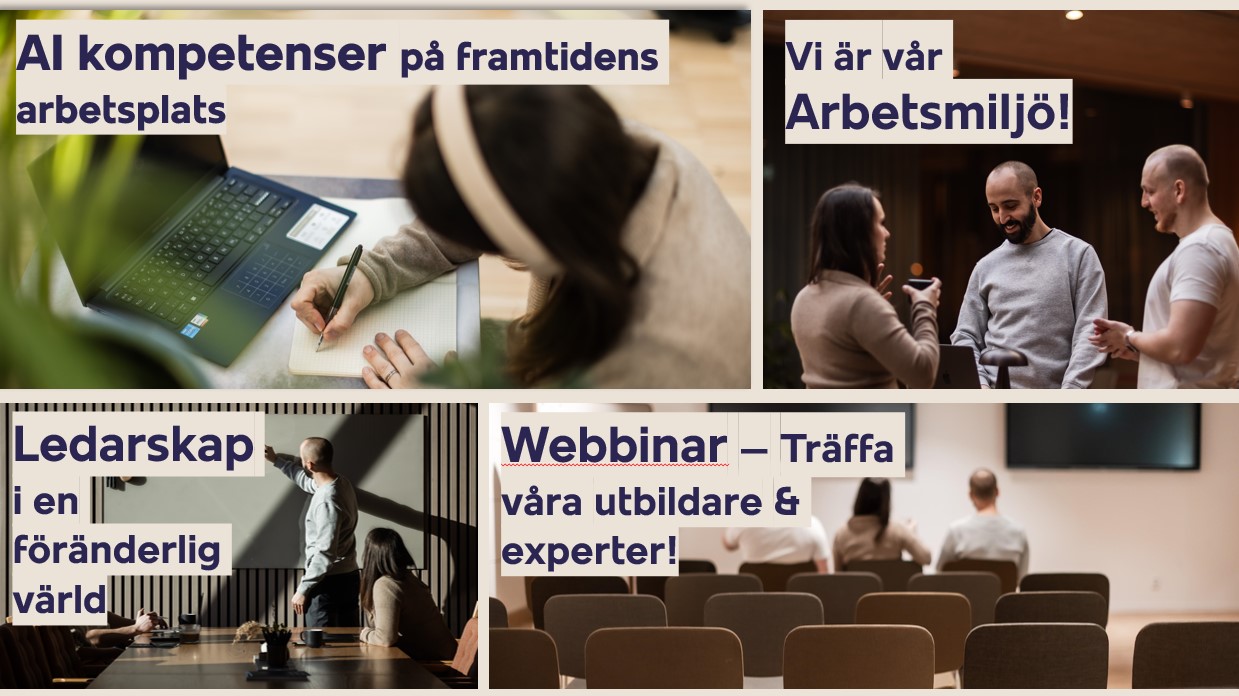 Vare sig kompetensutvecklingen gäller för en stor organisation, litet företag, team eller individ så kan vi erbjuda utbildningsformer och koncept för lärande som får effekt